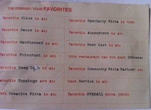 Pizza Wars has concluded its final week highlighting the various pizza establishments in New Orleans.  Pizza Wars is a competition between participating restaurants promoting “A NOLA Pizza Experience.”  You receive a pizza passport that can be stamped at each restaurant and upon completion you fill out a survey and vote for all your favorites—including: Best Thin Crust; Best Specialty Pizza; Best Beer Selection; Best Deep Dish; Best Atmosphere; and (click here for) your OVERALL favorite pizza joint.