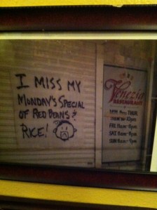 I called Frank Barrera, owner of El Rinconcito, a few times over the last couple of months but he was always busy- he just did not have the time to give an interview to a nosy young man (or anthropologist… this quality often goes hand in hand). Truth be told, it was harder than I expected for me to explain why I wanted to interview him about El Rinconcito. While there are specific things the Restaurant Row Recovery Project  hopes to find, I realized that making our research goals clear was easier said than done.
