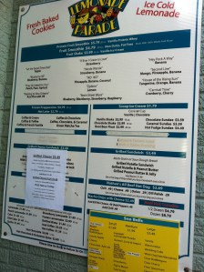 After a few failed attempts to set up an interview with the owners of Lemonade Parade, we decided to understand Lemonade Parade through what we could observe and read about online.  The building is small and fairly easy to miss if it was not for their bright yellow sign featuring “happy fruit.” From the outside there are a few tables and chairs for outside dining.  The inside was a bit small but this did not seem to concern the large group of high school boys that followed shortly behind me. After ordering a drink, I quickly moved aside to allow the group to place an order. After the last boy ordered, I ran up to talk with the employees, but was unsuccessful. For some reason they closed the windows and went to the back where they were out of sight. Not sure what to do from there, I thought perhaps it was best to not bother them with an interview, especially considering that they were unresponsive to emails and facebook requests.