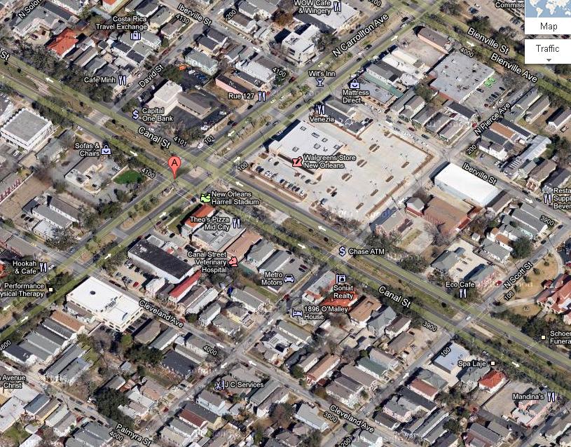 Carrollton and Canal Intersection 1950s and 2012 Image